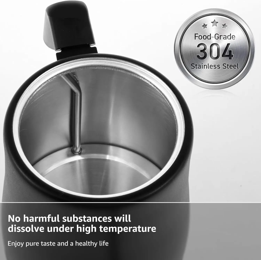 مصنوعة من فولاذ مقاوم للصدأ 100% من الداخل لتضمن طهياً صحياً ونقاءً في كل قطرة ماء، مع تصميم أنيق باللون الأسود المطفي ليضفي لمسة عصرية على مطبخك أو مكتبك.