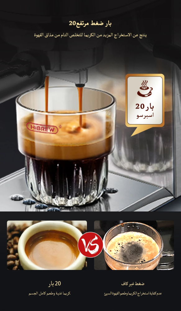 ماكينة صنع القهوة HiBREW كافتيرا 20 بار إينوكس شبه أوتوماتيكية فائقة النحافة ESE POD ومسحوق ماكينة كابتشينو إسبرسو الماء الساخن H11